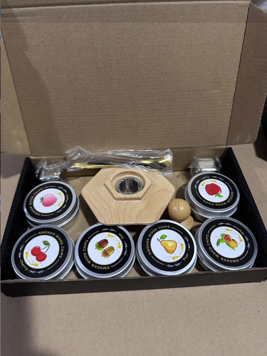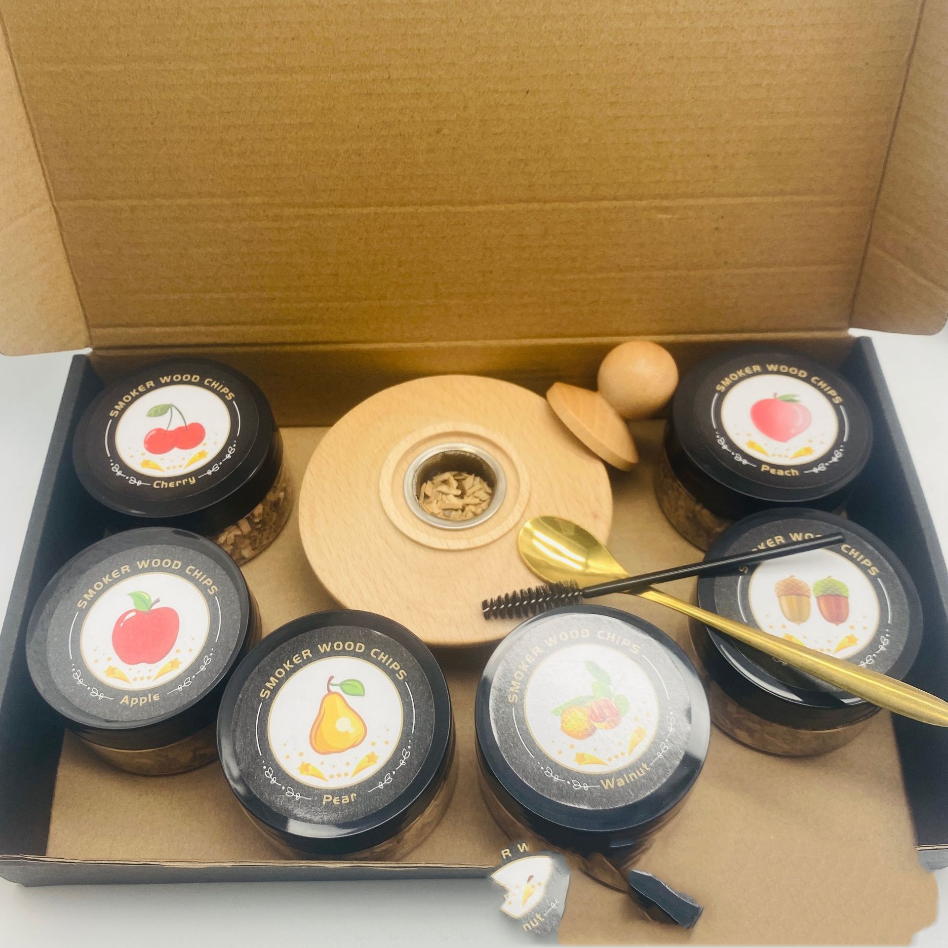Spoon*1pc+packaging box*1pc+lid*1pc+hexagonal iron tower*1pc+wood chips*4pcs+Cleaning tool*1pc/Spoon*1pc+packaging box*1pc+lid*1pc+hexagonal iron tower*1pc+wood chips*6pcs+Cleaning tool*1pc